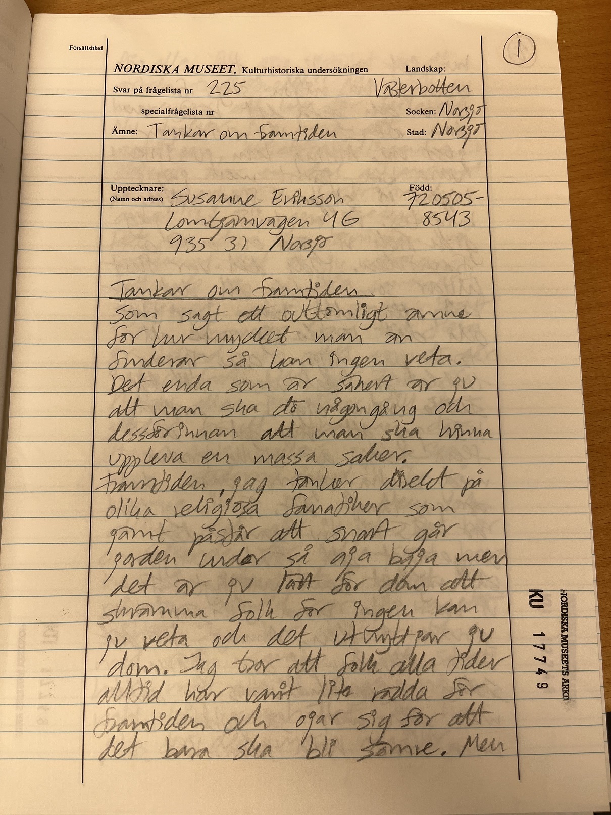 Brevet inkom till Nordiska museet 1998-08-11